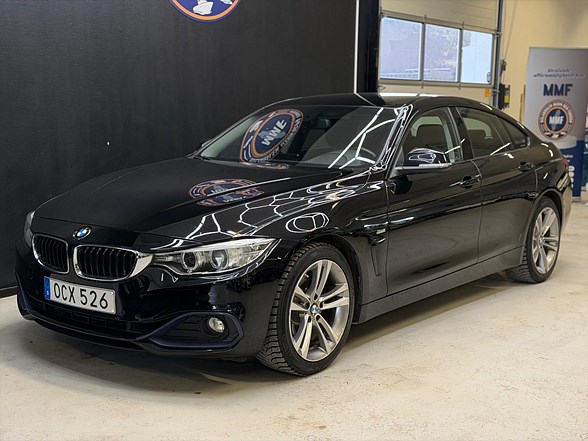 BMW 420i Gran Coupé Steptronic från 2017 med 184 hk. Bilen kombinerar elegans med körglädje och passar perfekt för både vardag och längre resor. Den är utrustad med Sport Line paketet som ger en sportigare känsla både invändigt och utvändigt. För komfort och funktion finns uppvärmda elspeglar, elektrisk baklucka, Bluetooth, AUX och USB samt navigation som gör körningen smidig. Sätesvärme fram och rattvärme gör kalla dagar betydligt bekvämare. Med multifunktionsratt och körprofilsväljare (Eco Pro, Comfort, Sport och Sport+) kan du enkelt anpassa körupplevelsen efter behov. Keyless start, farthållare och start & stopp system bidrar till en bekväm och effektiv körning. Backkamera och parkeringssensorer fram och bak gör parkering enkel och Isofix fästen bak gör bilen praktisk även för barnfamiljen. Ny inkommen & redo för omgående leverans. Vi tar emot alla inbyten och erbjuder hemleverans i hela Sverige!